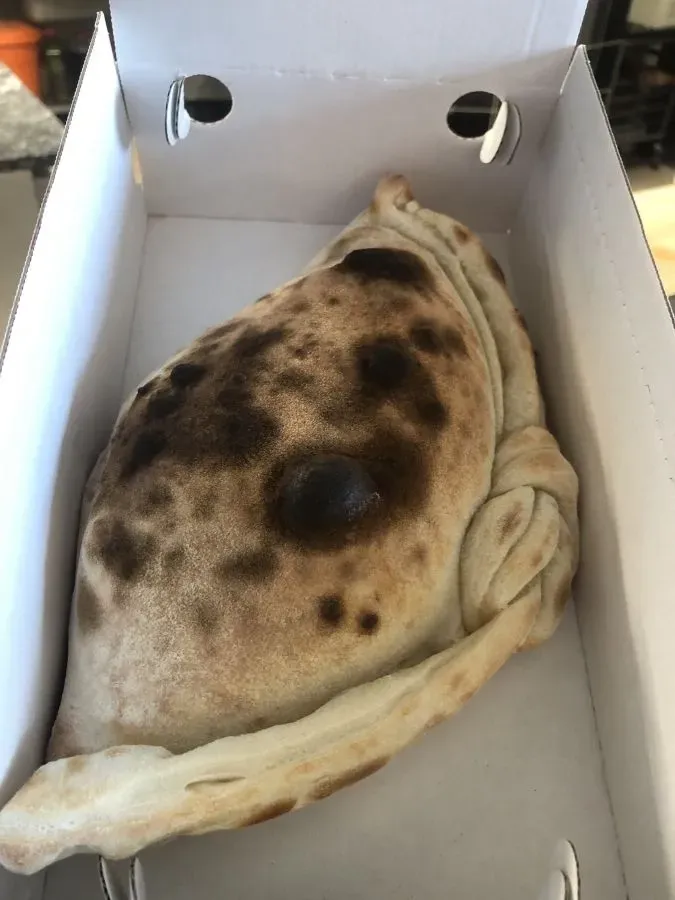 Sauce tomate, mozzarella, jambon, champi- gnons frais, œuf, origan, en chausson.